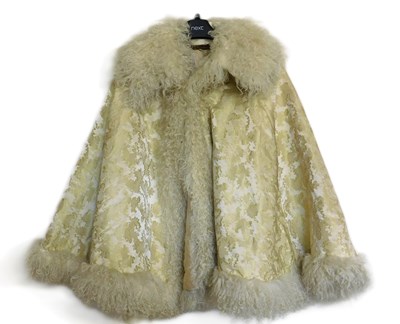 Lot 9A cream brocade fur trimmed cape, by Woolright...