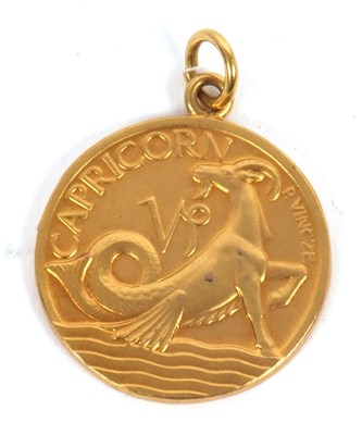 Lot 169A 9ct Capricorn pendant, the front with relief...