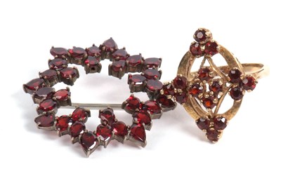 Lot 112 - Mixed Lot: 9ct gold garnet set cluster ring. A...