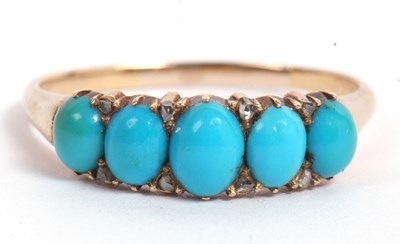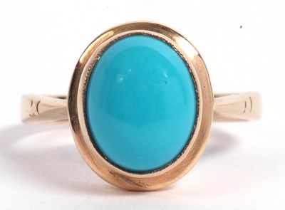 Lot 114 - 9ct gold and turquoise ring, the oval cabochon...