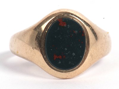 Lot 125 - 9ct gold blood stone signet ring, 8x6mm, bezel...