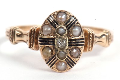Lot 124 - Antique seed pearl and diamond ring featuring...