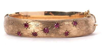 Lot 156 - 9ct gold and ruby set hinged bracelet, the top...
