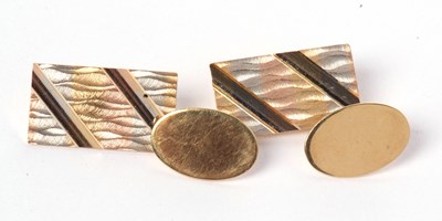 Lot 160 - Pair of 750 stamped cufflinks, the front...