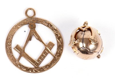 Lot 164 - 9ct gold framed masonic ball pendant, opening...