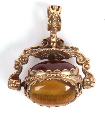 Lot 166 - 9ct gold triple sided swivel fob consists of...