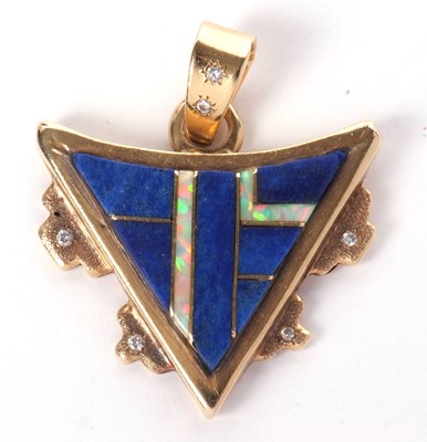 Lot 168 - Lapis lazuli opal and diamond set pendant, a...