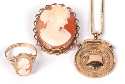 Lot 123 - Mixed Lot: 9ct gold hardstone cameo ring...