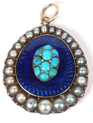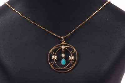 Lot 171 - Turquoise and seed pearl open work pendant, a...