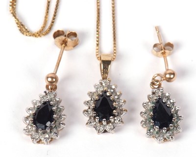 Lot 172 - 9ct gold sapphire and diamond pendant with...