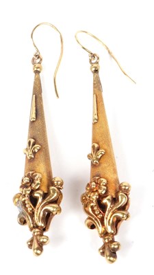 Lot 175 - Pair of antique gold drop earrings designed as...