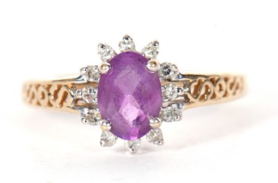 Lot 141 - Modern 9ct gold amethyst and diamond cluster...