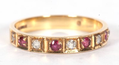 Lot 144 - 18ct gold diamond and ruby half eternity ring...