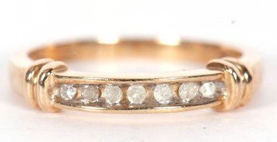 Lot 145 - A modern 10K stamped, seven-stone diamond ring,...