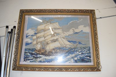 Lot 735 - TAPESTRY PICTURE OF A GALLEON, GILT FRAMED