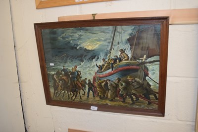 Lot 747 - COLOURED PRINT, VICTORIAN LIFEBOAT, FRAMED AND...