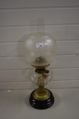 Lot 206 - VICTORIAN OIL LAMP WITH BRASS BASE