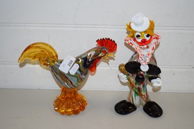 Lot 208 - MURANO GLASS CLOWN AND FURTHER MODEL COCKEREL