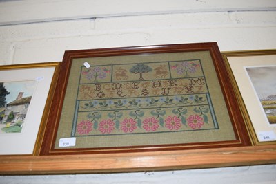Lot 239 - NEEDLEWORK PICTURE WITH ROWS OF ALPHABET AND...