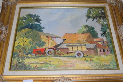 Lot 241 - GODDARD STUDY OF A FARMYARD WITH TRACTOR, OIL...