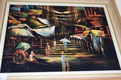 Lot 243 - ORIENTAL SCHOOL STUDY OF A MARKET SCENE, OIL...
