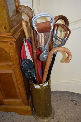 Lot 305 - BRASS STICK STAND CONTAINING AN ASSORTMENT OF...