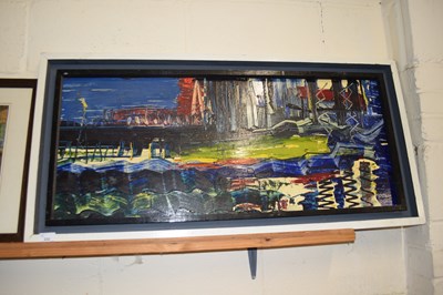 Lot 232 - M A BUSSEY, ABSTRACT STUDY, HARBOUR SCENE, OIL...
