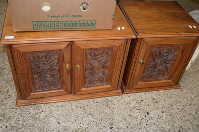 Lot 380 - PINE TWO DOOR CUPBOARD WITH CARVED DECORATION...