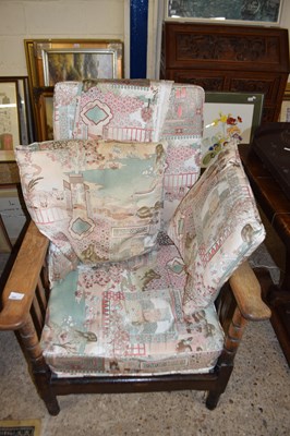 Lot 390 - EARLY 20TH CENTURY OAK FRAMED ADJUSTABLE ARMCHAIR