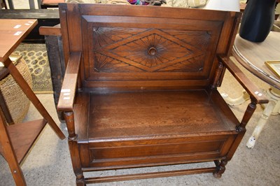 Lot 399 - EARLY 20TH CENTURY OAK MONKS BENCH, 106CM WIDE