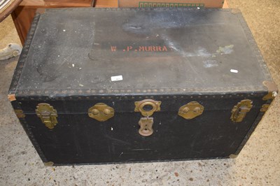 Lot 401 - VINTAGE METAL BOUND TRAVEL TRUNK, 92CM WIDE