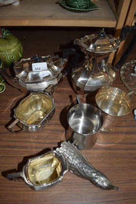 Lot 512 - MIXED LOT: SILVER PLATED TEA SET AND OTHER ITEMS