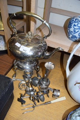 Lot 542 - MIXED LOT: SILVER PLATED SPIRIT KETTLE PLUS...