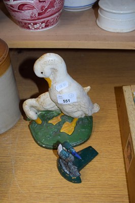 Lot 551 - TWO CAST IRON DOOR STOPS FORMED AS DUCKS AND A...
