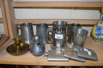 Lot 554 - MIXED LOT: VARIOUS PEWTER TANKARDS, HIP FLASKS,...