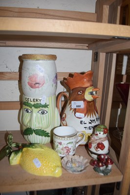 Lot 660 - MIXED LOT: NOVELTY COCKEREL JUG, VARIOUS...