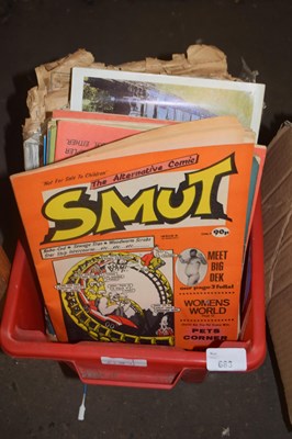 Lot 683 - BOX CONTAINING DISCO 45 MAGAZINE, SMUT COMIC ETC