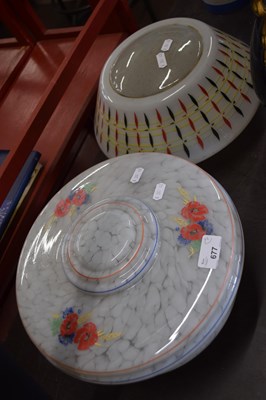 Lot 677 - TWO RETRO GLASS CEILING LIGHT SHADES