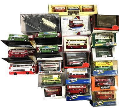 Lot 229 - A mixed lot of various boxed die-cast buses,...