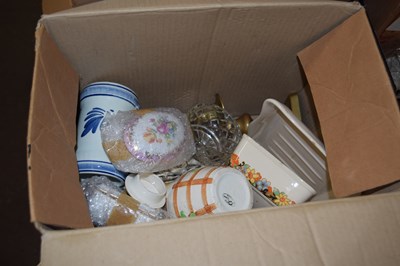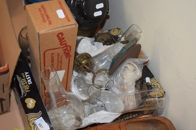 Lot 687 - Box of various oil lamp chimneys, wall mounted...