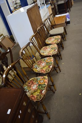 Lot 808 - A set of six Ercol dark elm stick back chairs
