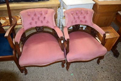 Lot 325 - A pair of Victorian pink upholstered bow back...