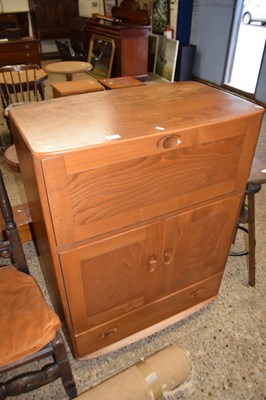 Lot 355 - An Ercol light elm bureau or side cabinet with...