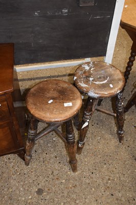 Lot 380 - A pair of Victorian stools on turned legs,...