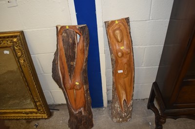 Lot 426 - A pair of modern carved hardwood wall plaques...