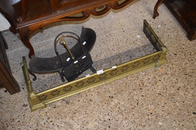 Lot 435 - A pierced brass fire fender, an iron footman...