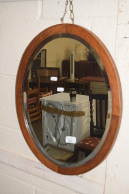 Lot 516 - An oval bevelled wall mirror in hardwood frame